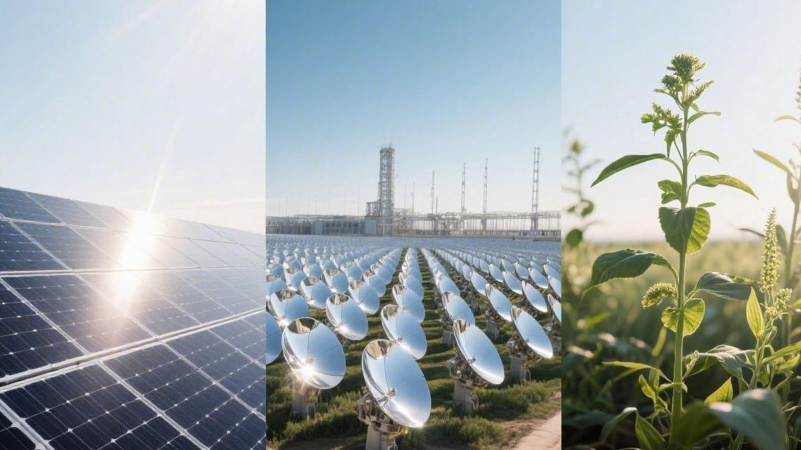 Photovoltaic power generation (efficiency approx. 20% with direct power supply), solar thermal power generation (utilizing concentrated energy storage for 24-hour continuous supply), and passive utilization (achieving up to 50% energy savings through architectural design).