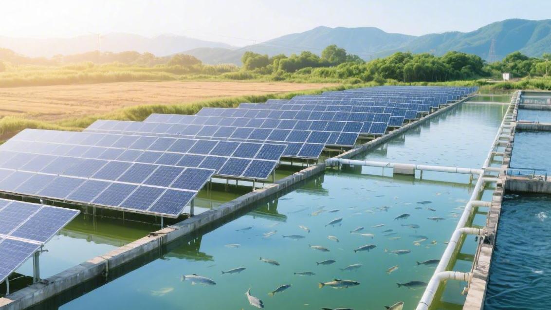 Fishery-solar complementarity realizes "one land two uses" by erecting photovoltaic panels above the water surface.